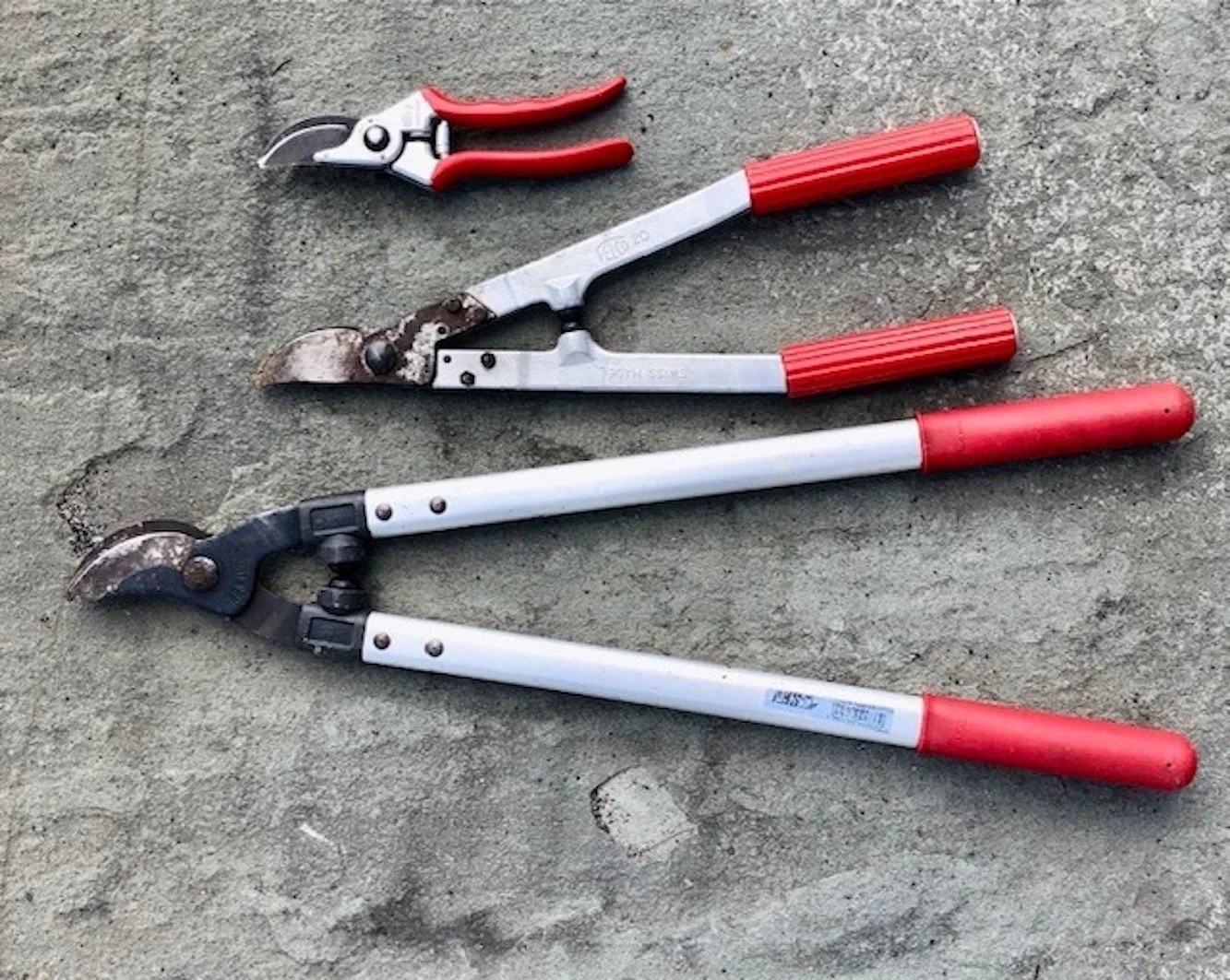 Below is my much used collection of Felco and ARS pruning tools. They’re pricey - ranging from around $60 -120 depending on size and where you purchase them. They’ve served me well for many years. One thing I really like about these companies is that you can buy replacement parts - any problem is easy to fix and blades as well as other parts can be replaced.
